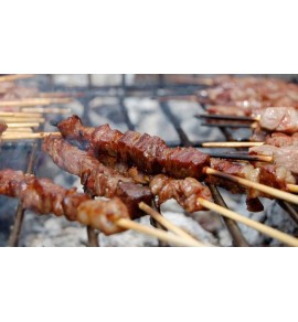 Arrosticini - piccoli spiedini fatti a mano utilizzando le parti scelte e miste in modo da poter garantire, una volta cotte, gusto e tenerezza.