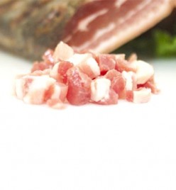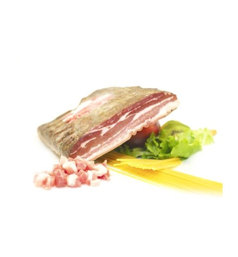 Pancetta Tesa Quadrata di Suino‚ provvista di Nervetto‚ il quale potrebbe non essere gradito dal Cliente‚ per questo non si consiglia l'utilizzo come tipico affettato (anche se molto richiesta)‚ ma Come Ingrediente per Ricette di Cucina nel formato a fettine oppure a dadini (per Carbonara‚ Bacon ecc...)
