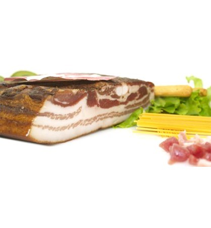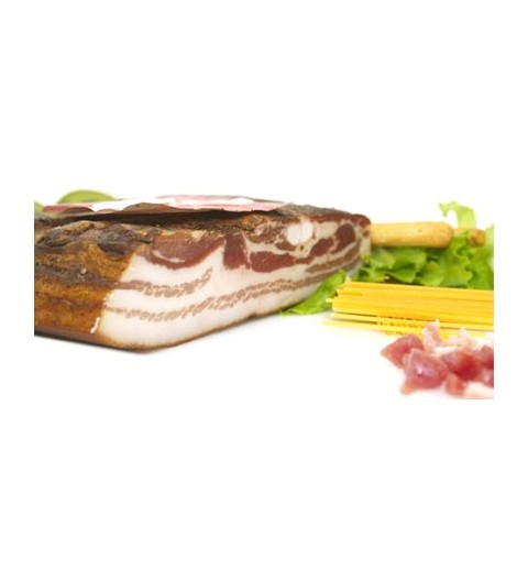 Pancetta Tesa Quadrata di Suino‚ provvista di Nervetto‚ il quale potrebbe non essere gradito dal Cliente‚ per questo non si consiglia l'utilizzo come tipico affettato (anche se molto richiesta)‚ ma Come Ingrediente per Ricette di Cucina nel formato a fettine oppure a dadini (per Carbonara‚ Bacon ecc...)